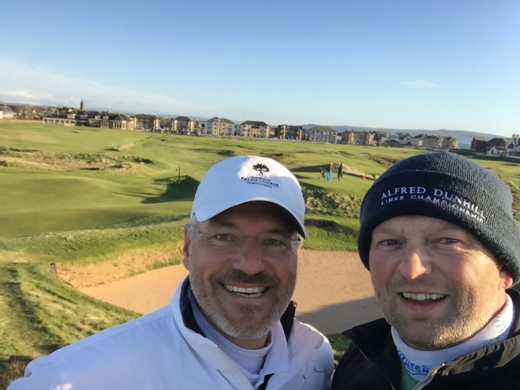 Mein treuer Golfbegleiter Gerhard Karl setzte mit mir gemeinsam die Mission um. 2014 führte uns die nächste Reise nach Schottland. Nicht nur der Ryder Cup im Herbst ließ unsere Herzen höher schlagen, wir konnten weitere traumhafte Plätze abspielen.